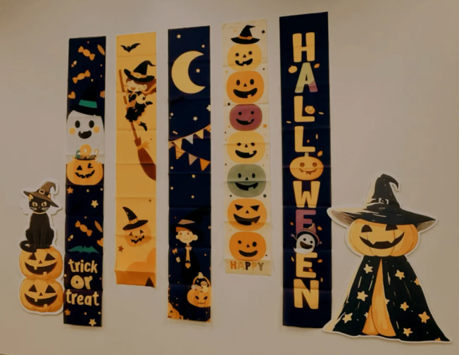 No witch hats or vampire capes here—instead, the office was subtly brightened with Halloween touches. Small orange pumpkin figurines adorned meeting tables, cute ghost stickers dotted workstations, and a simple "Trick or Treat" banner hung in the pantry. These understated decorations let the festive mood shine through naturally.
