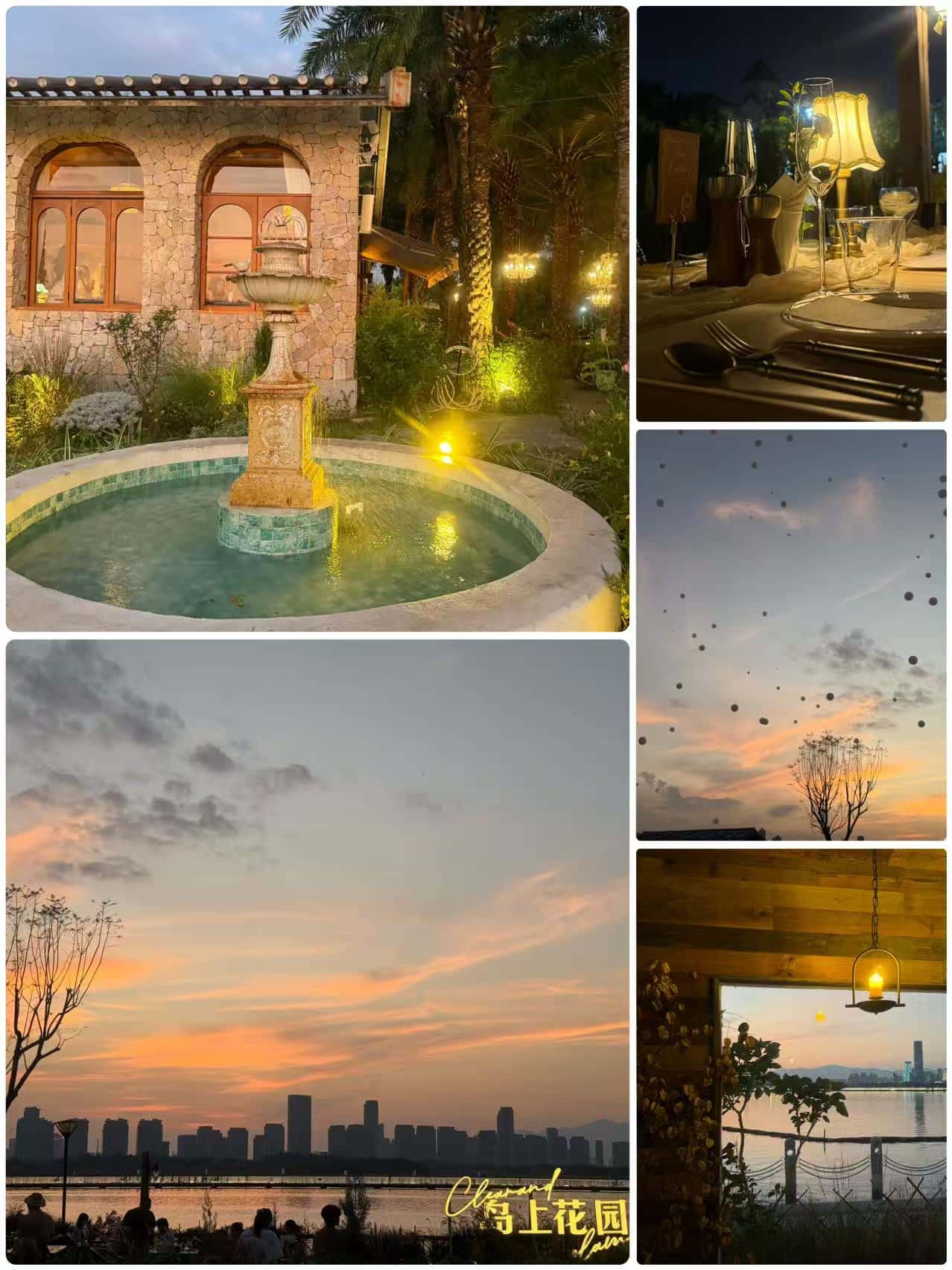 On the day of the dinner, employees arrived at the restaurant one after another in simple casual daily clothes. There was no deliberate dressing up, but this made the atmosphere even more relaxed and comfortable. As soon as they walked in, everyone was attracted by the strong French-style ambiance — vintage metal chandeliers, light-colored floral tablecloths, and neatly arranged wooden wine racks, with understated elegance emanating from every corner. Many people took out their mobile phones to take photos outdoors, framing themselves with the setting sun.