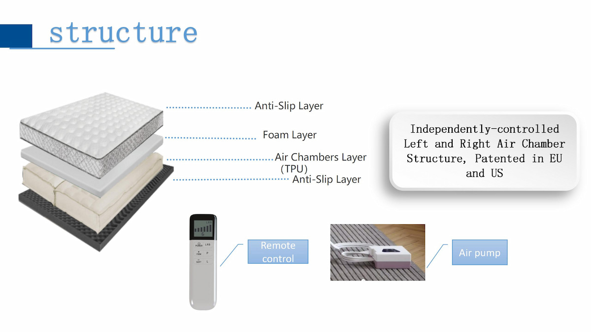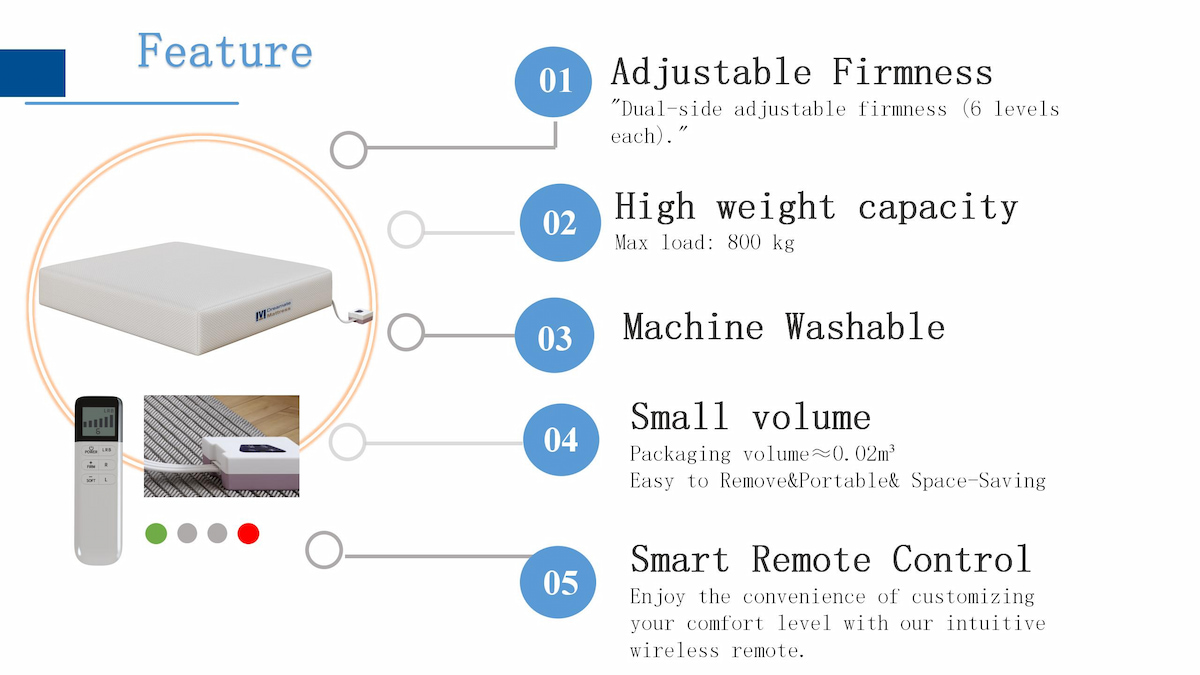 이것 스마트 안티-간섭 편안한 압력 완화 매트리스 각 면에 6단계의 단단함을 조절할 수 있는 양면 조절 기능과 파트너의 수면을 방해하지 않고 자유롭게 움직일 수 있는 방해 없는 디자인이 특징입니다.