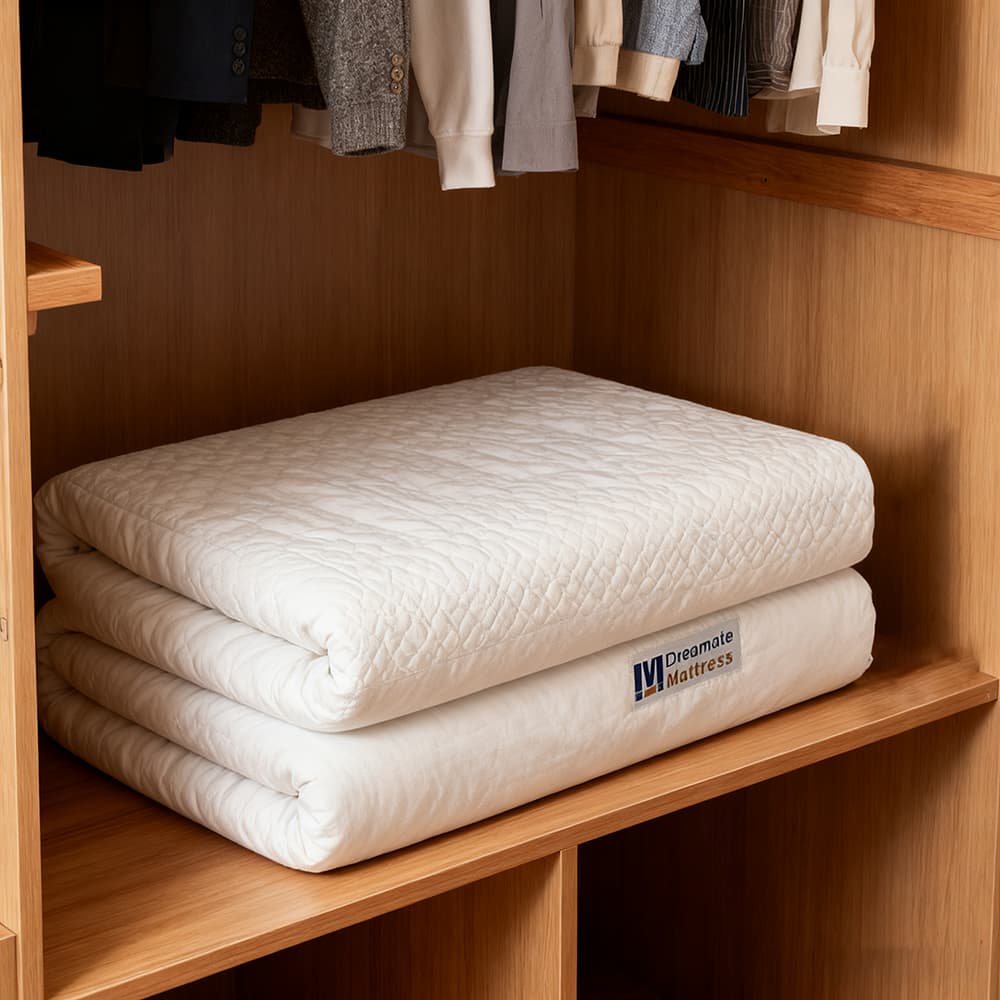작은 아파트에 산다고 해서 밤에 잠을 제대로 못 자거나 집이 어수선해지는 것을 감수해야 하는 것은 아닙니다. Dreamate Home 매트리스는 좁은 공간에서 매트리스가 가장 불편하게 느끼는 부분들을 모두 해결해 줍니다. 공간을 절약하고, 파트너와 함께 편안하게 잠들 수 있도록 해주며 (타협 없이), 최소한의 노력으로 깨끗하게 유지되고, 이동 및 보관이 간편합니다. 단순한 접이식 매트리스가 아니라, 작은 아파트를 더 넓고, 아늑하고, 기능적으로 만들어 주는 방법입니다.
